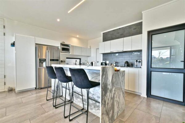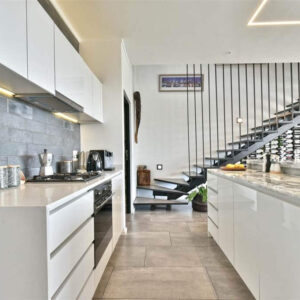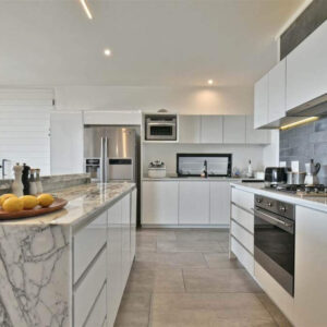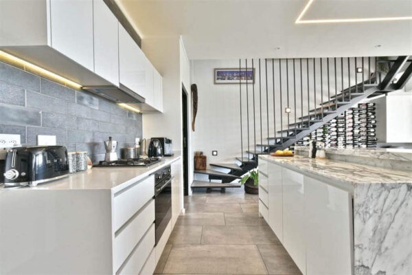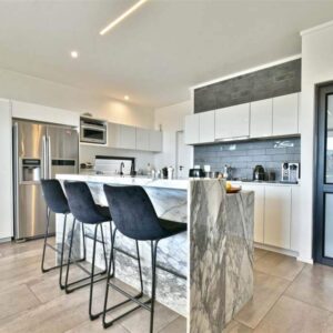 Upon entry, you’ll be entranced by the ingenious use of space, accentuated by soaring ceilings and a breathtaking display of modern LED lighting. The kitchen, a masterpiece of design, features high-grade white marble and boasts a GAS SMEG oven. It seamlessly flows into the dining room and lounge, enhanced by a striking winter fireplace, creating a seamless transition to the covered patio and the tranquil private garden. Every corner of this home has been meticulously optimized for both form and function.