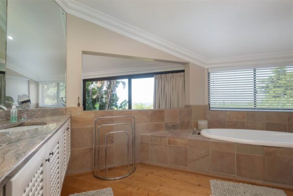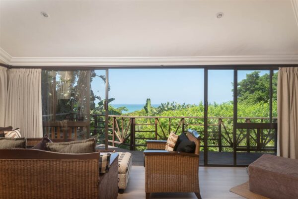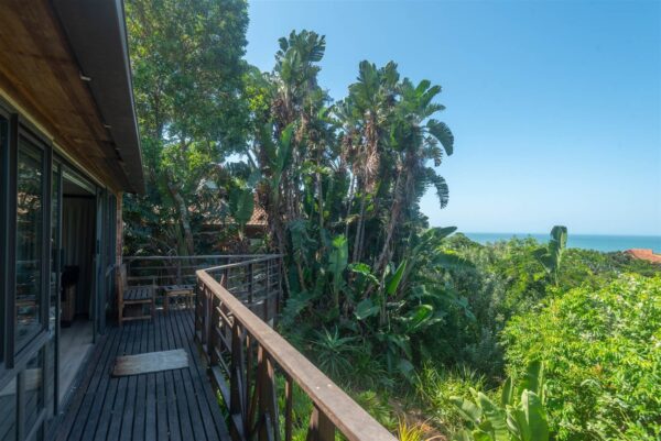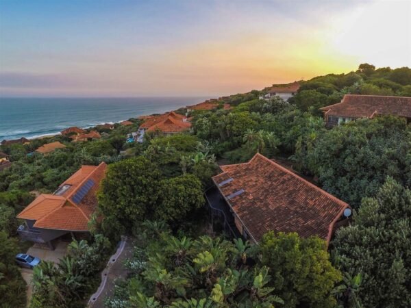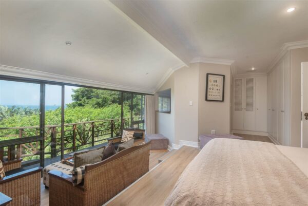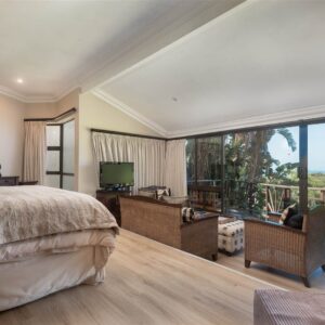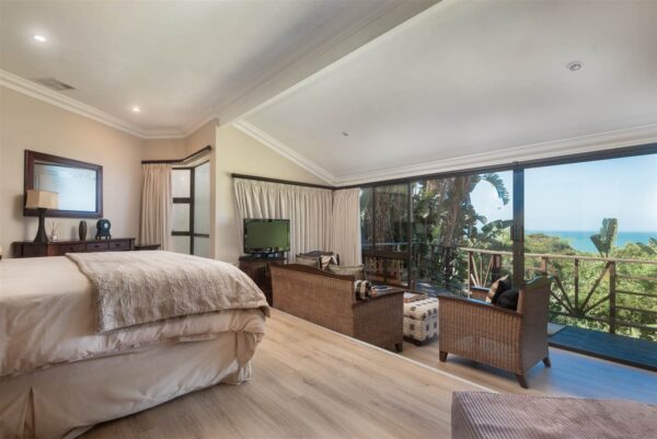 This exquisite coastal bungalow offers a serene haven tucked away in the heart of the enchanting Zimbali Forest Estate, boasting breathtaking sea vistas. The master bedroom is truly captivating, designed to indulge your senses with an elevated bed that allows you to wake up to the mesmerizing ocean views without ever lifting your head from the pillow. The living and entertainment spaces exude intimacy, charm, and comfort, setting the stage for memorable gatherings. What makes this property truly unique is that it’s a freehold opportunity that retains the essence of a thoughtfully planned development, resulting in only a single levy.