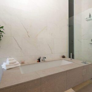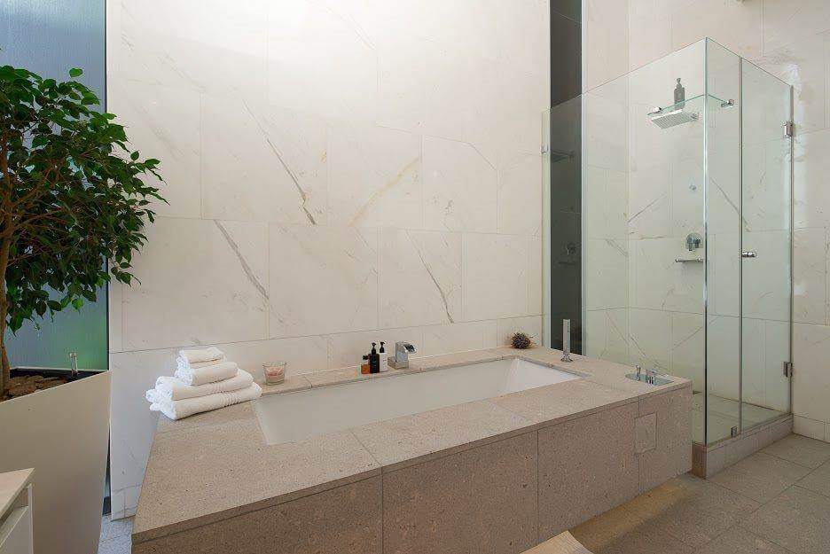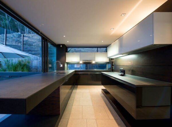The heart of this home unfolds in the generous double-volume open-plan entertainment area. Here, space becomes an extension of the art of living. Sliding glass doors seamlessly connect the interior to an expansive terrace, where an inviting rim-flow pool adds to the sense of grandeur. It’s a sanctuary of tranquility. The courtyard mountain garden introduces a touch of nature into this architectural masterpiece, creating a harmonious fusion of the built environment and the natural world.