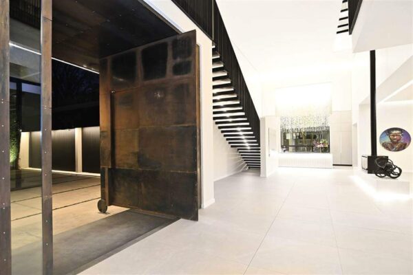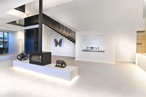 Special features of this remarkable home include a flatlet with two bedrooms, en-suite bathrooms, a kitchen, and a lounge. There’s also a self-cleaning heated rim-flow pool, underfloor heating, and an impressive 8-car garage.