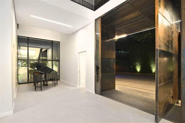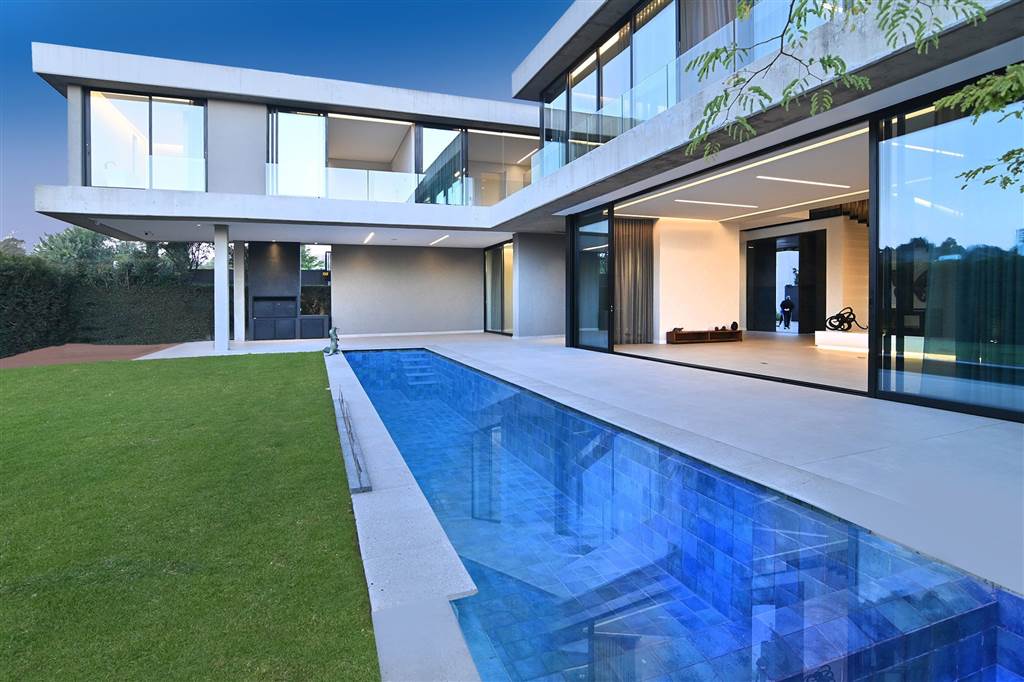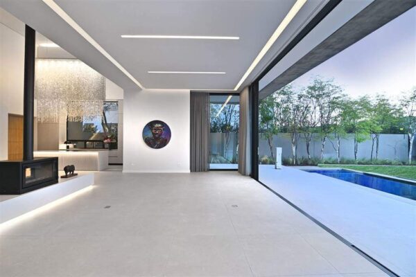 Welcome to a Modern Contemporary masterpiece nestled within a secure 24-hour guarded housing estate. This exceptional residence offers a timeless vista of the sky, stars, and the iconic Sandton skyline. A harmonious blend of architecture and design unfolds, as this Modern Contemporary gem, envisioned by renowned architect Enrico Daffonchio, stands as a testament to unparalleled craftsmanship and meticulous attention to detail.