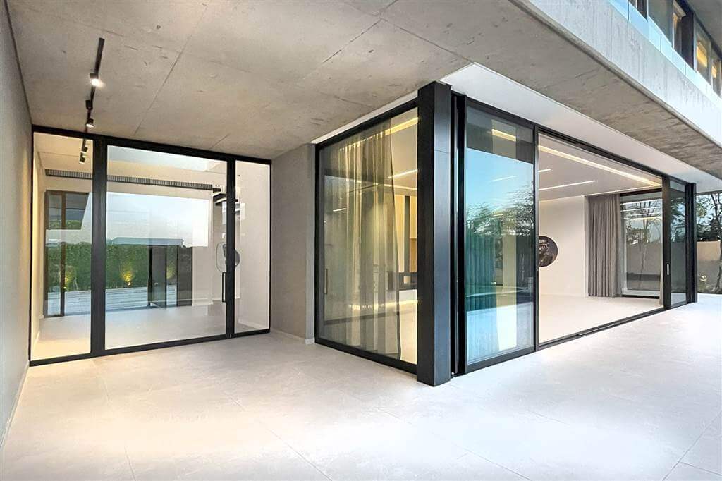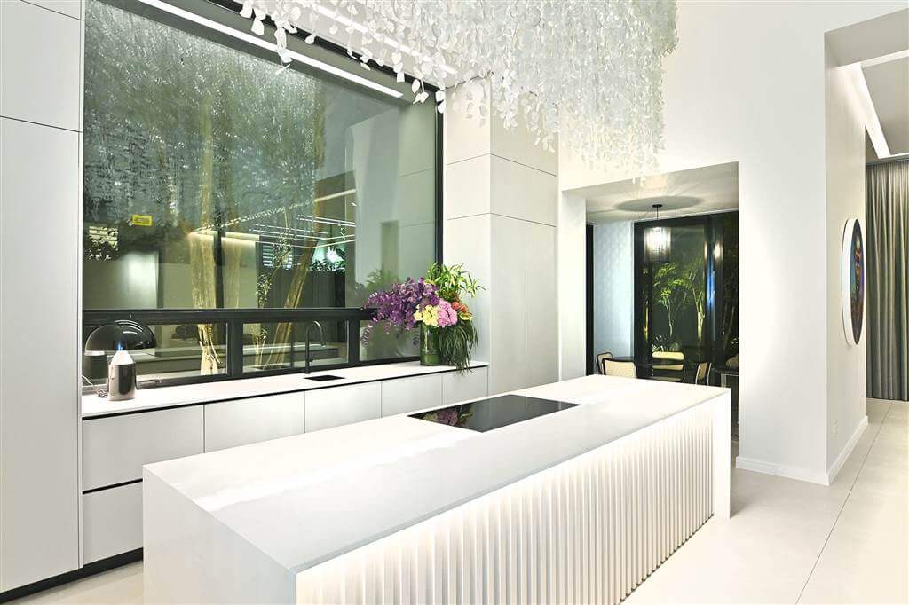 Exuding an intoxicating sense of quality, refined elegance, style, and glamour, this home beckons with its fluid, open spaces, clean lines, soaring double volumes, and grand proportions. Imported granite slabs, feature walls of off-shutter concrete, and vast glass windowscapes work together to flood the interiors with natural light and seamlessly merge the verdant greenery and breathtaking views into the glamorous design.