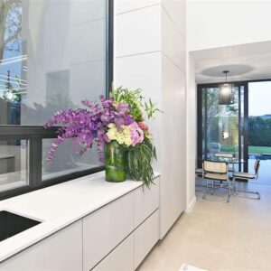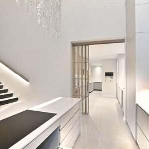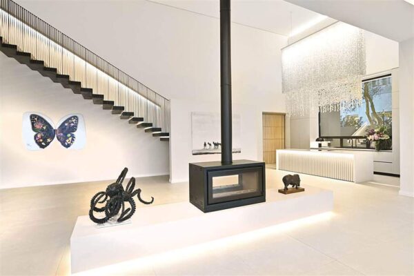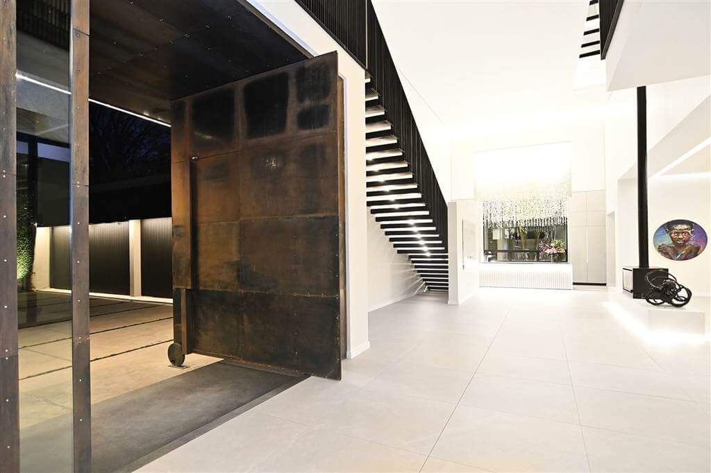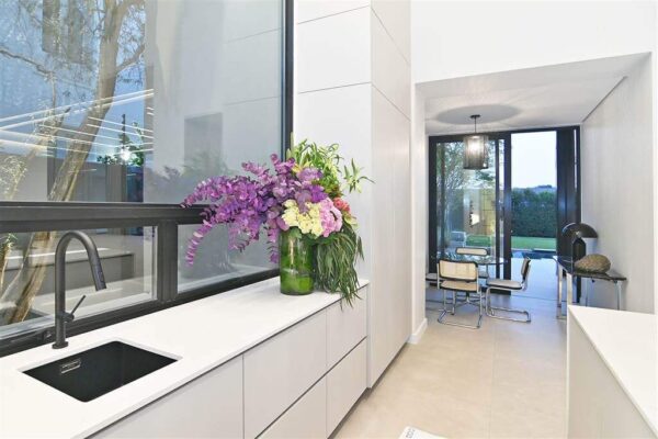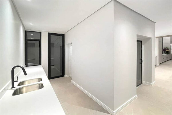 From the striking double-volume entrance with its captivating feature door and expansive glass windows, you are welcomed into a lifestyle that encapsulates grand entertaining in a sumptuous environment of luxury, all while maintaining the comforts of interactive family living. The entrance hall serves as the gateway to numerous free-flowing reception areas, each boasting awe-inspiring double volumes. These spaces include a formal lounge, a stately dining room with a feature fireplace, an informal lounge that seamlessly integrates with the bespoke Cordon Bleu kitchen equipped with top-of-the-line appliances and cabinetry. A second fully equipped work/butler’s kitchen, complete with a cold room and pantry, adds an extra layer of functionality. There’s also a separate scullery/laundry area.