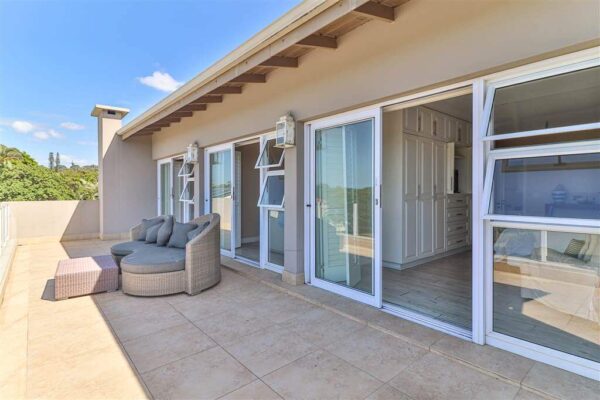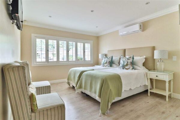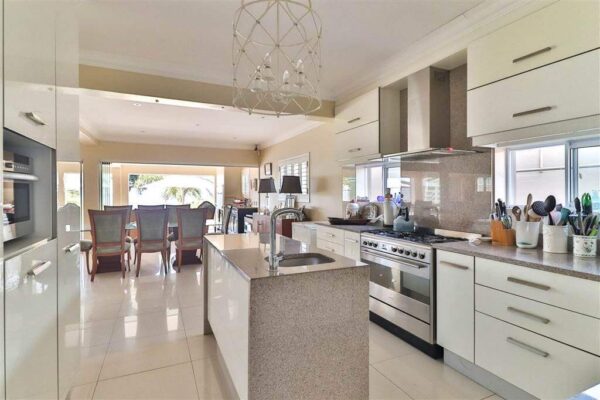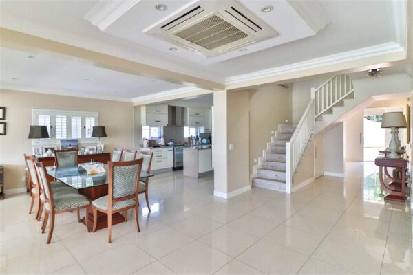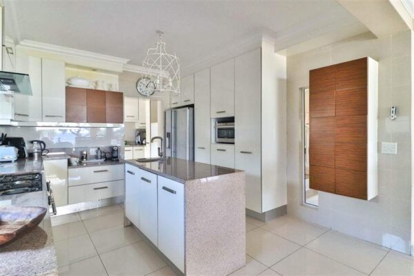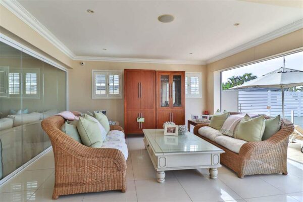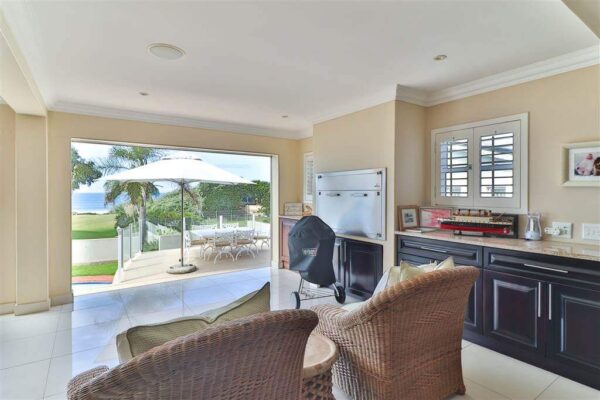 This luxurious beachfront haven is adorned with a plethora of exceptional features, including a generator, three-phase electricity, energy-efficient LED lighting, dual 5000-litre Jo Jo water tanks, a water purification system, air conditioning that envelops the entire home in comfort, a double carport, staff accommodation, a comprehensive CCTV camera system, and an integrated surround sound speaker system.