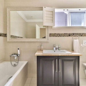 The ground floor encompasses a guest bedroom with an en-suite bathroom, while on the upper level, you’ll discover three opulent sea-facing bedrooms. One of these boasts a sumptuous en-suite bathroom, and a second family bathroom caters to the other two bedrooms.